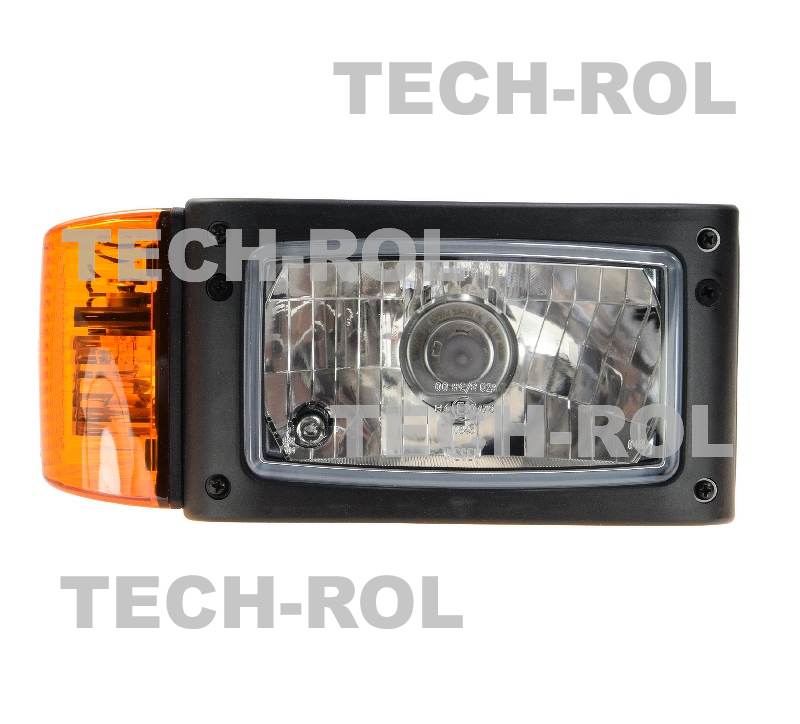 Reflektor przedni prawy, plastikowy, H4, 12V / 24V, światła mijania, drogowe, pozycyjne, kierunkowskaz, 110 mm / 245 mm, Merlo, JCB, Genie Terex, Manitou, Ausa, Eurocomach REPR2.42751.02 Wesem