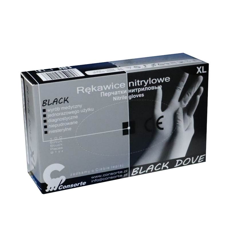 Rękawice diagnostyczne gumowe wykonane z nitrylu Czarne rozmiar XL wzmacniane