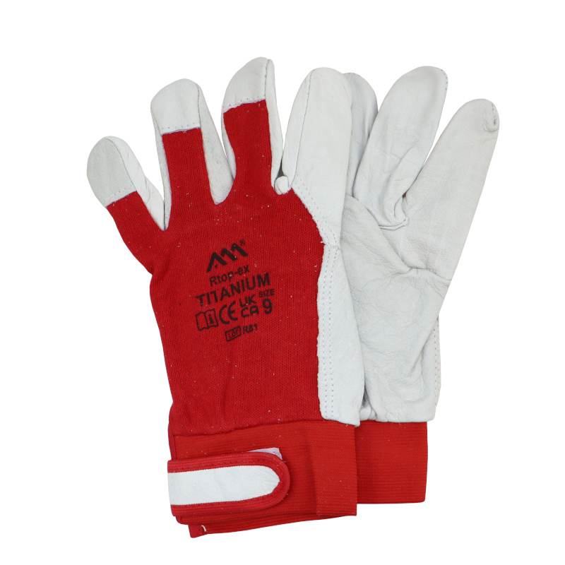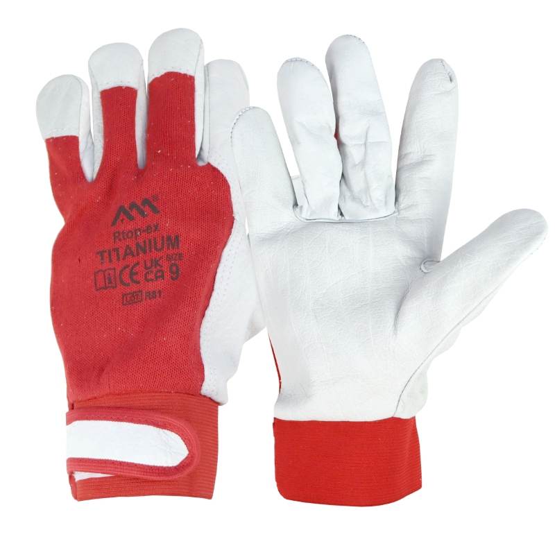 Rękawice ochronne z licowej skóry bydlęcej pięciopalcowe elastyczne Titanum czerwone rozmiar 10