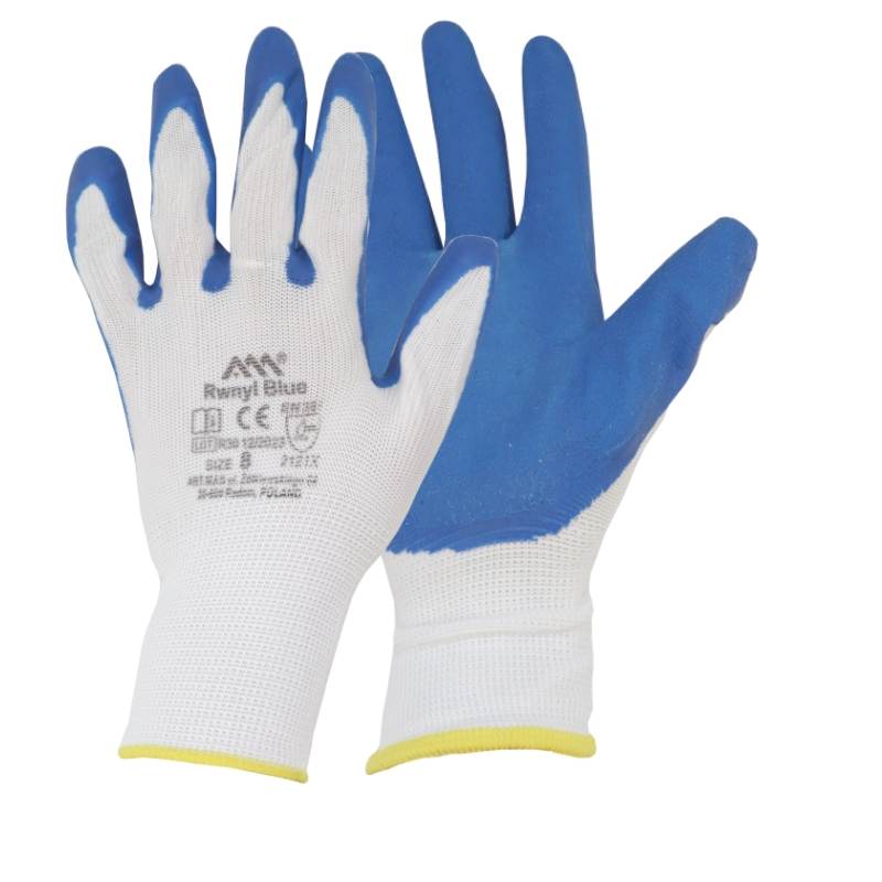 Rękawice z elastycznej tkaniny powlekana chropowatym, marszczonym lateksem ściągacz na nadgarstku Rozmiar 8 niebieskie