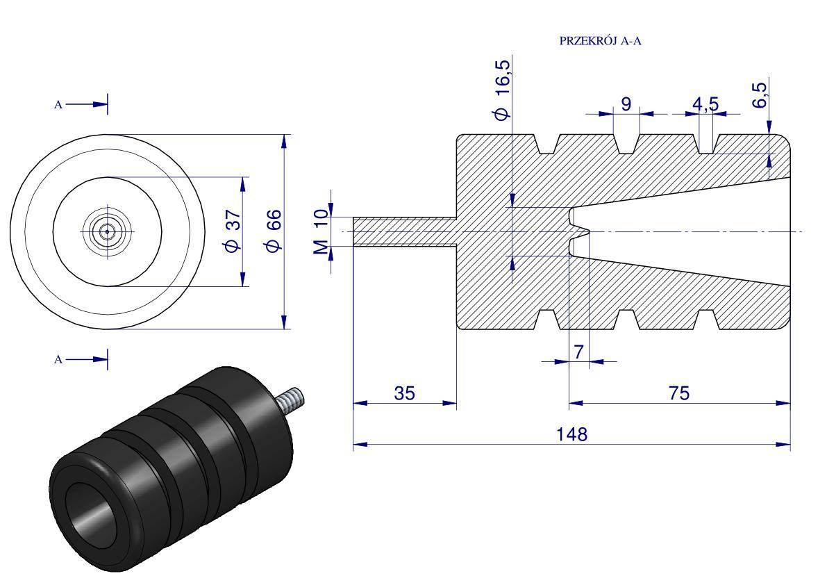 Resor odbój gumowy śruba m10 wysokość 114mm prosty nr-188 przyczepa