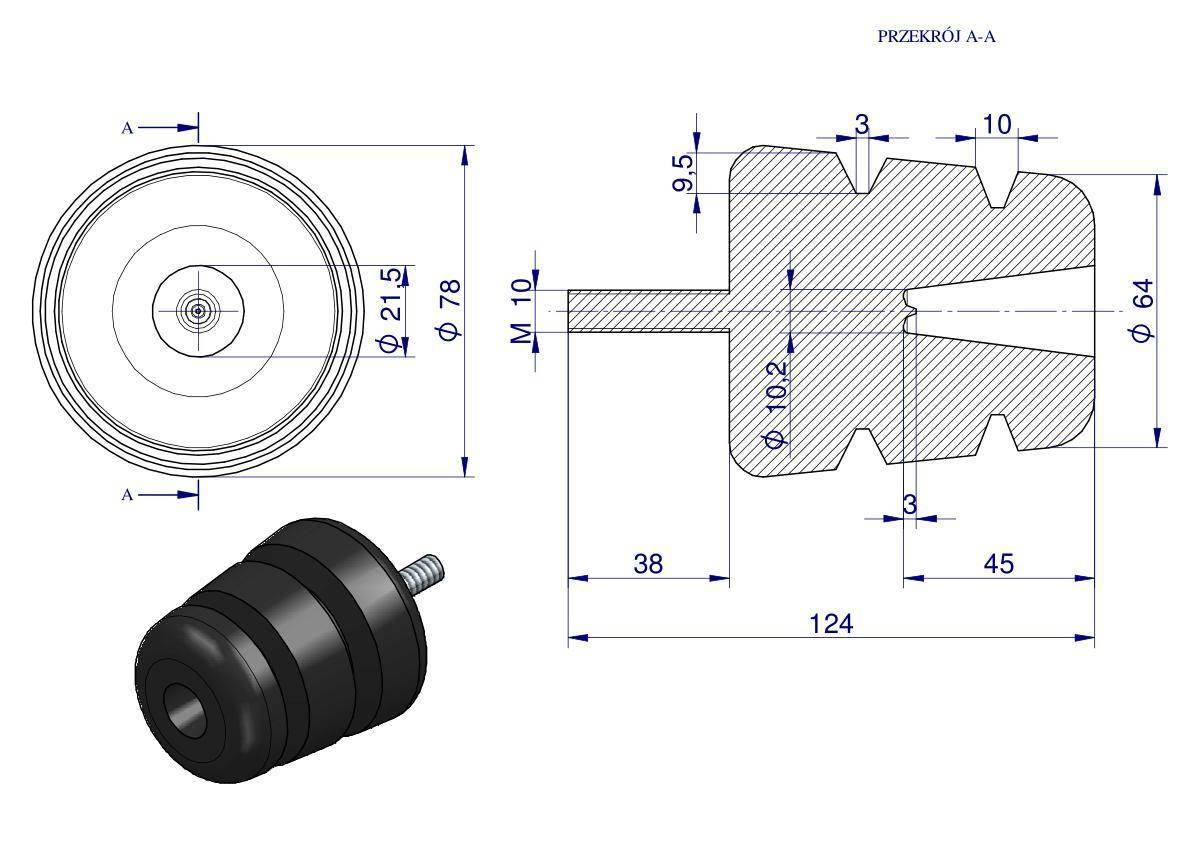 Resor odbój gumowy śruba m10 wysokość 85mm stożkowy nr-189 przyczepa