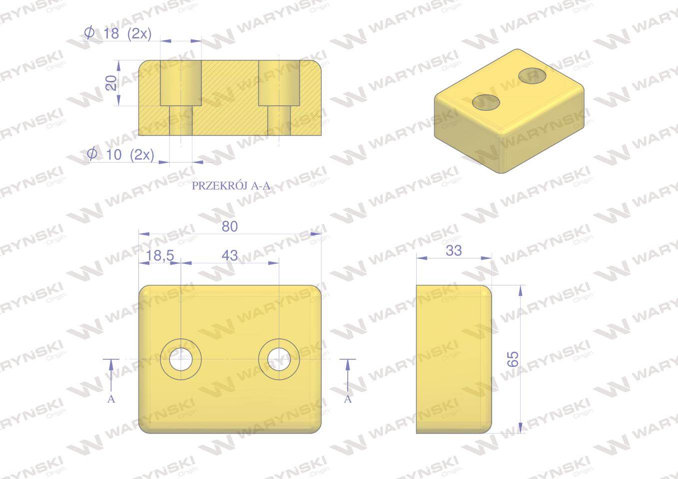 Resor płaski odbojnik poliuretanowy 80x65x33 90sha waryński