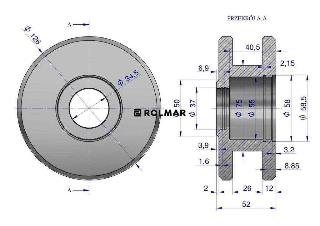 Rolka prowadząca koła podnoszącego n.typ otwór fi 55/34,5mm anna