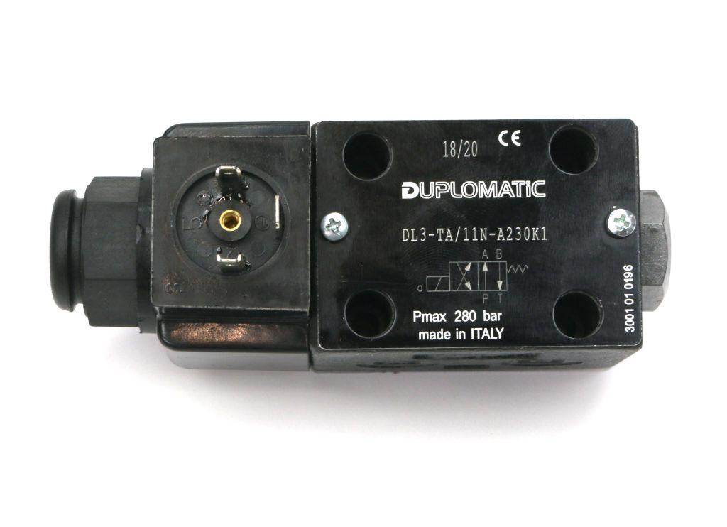 Rozdzielacz suwakowy, sterowany elektycznie dl3-ta02/11n-a230k1 duplomatic. Kompaktowe, niewielkie wymiary elektrozaworu i samych cewek pozwalają na montaż w hydraulice mobilnej, przenośnych zasilaczach, rolnictwie.