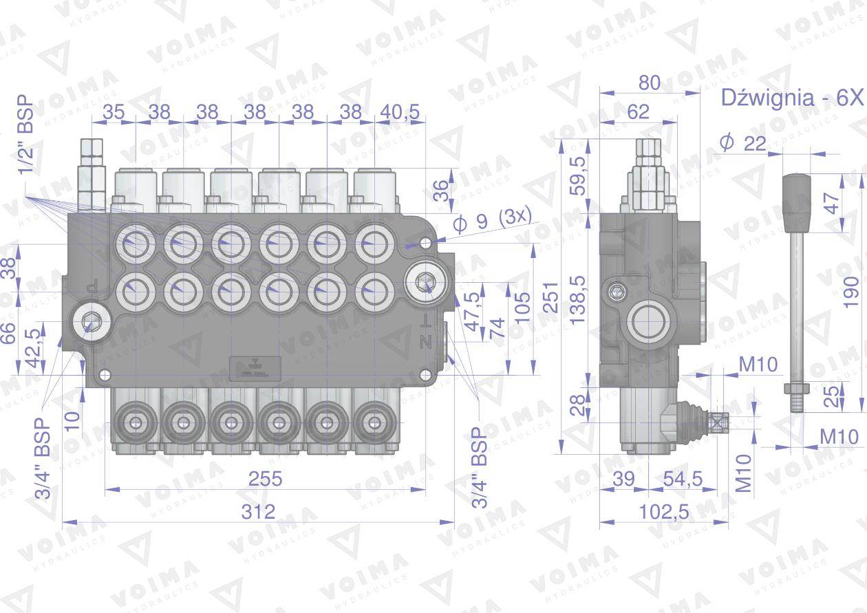 Rozdzielacz hydrauliczny 6-sekcyjny 80l voima