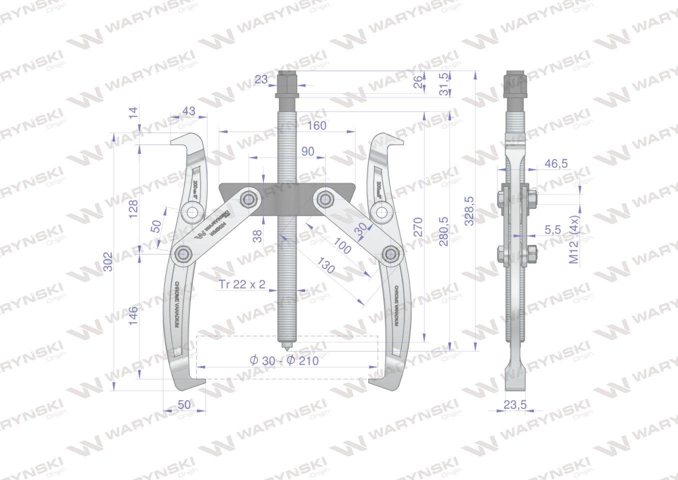 Ściągacz do łożysk dwuramienny typ s 30-210 waryński