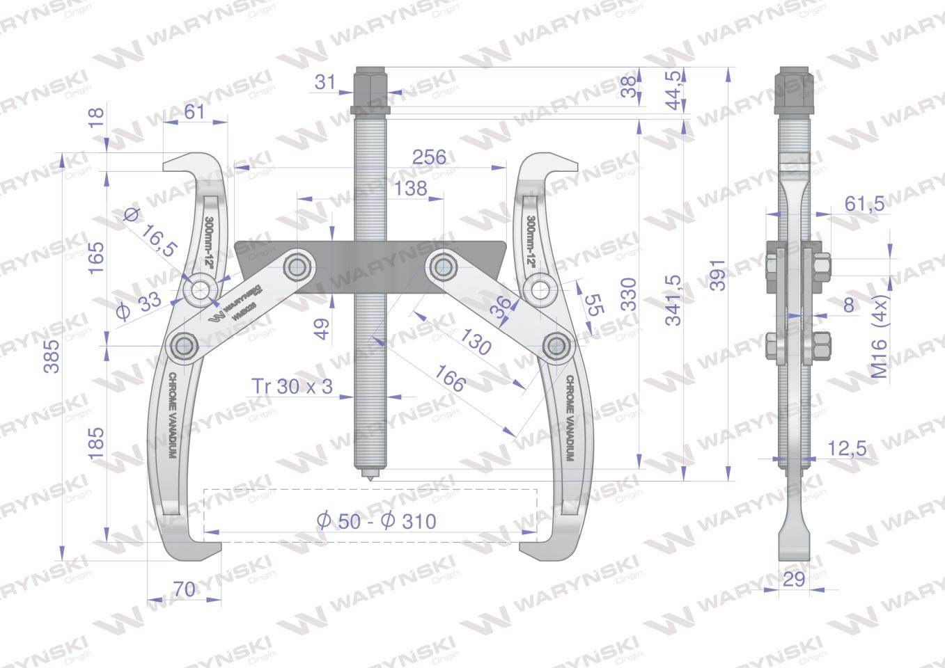 Ściągacz do łożysk dwuramienny typ s o rozstawie hartowanych ramion roboczych 50-310 mm waryński