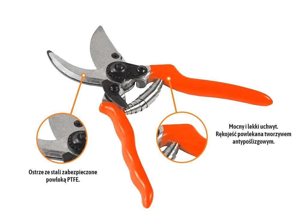 Sekator nożycowy – jednoręczny – uniwersalny / teger / to idealne narzędzie do pielęgnacji ogrodu i innych drobnych prac. Ostrze ze stali o zakresie 20mm sprawia, że nadaje się do przycinania mniejszych gałęzi, krzewów i i roślin. Wygodna, ergonomiczna rękojeść doskonale leży w dłoni, zapewniając komfortową pracę. Zamek obsługiwany jedną ręką ułatwia zablokowanie sekatora i jego bezpieczne przechowywanie