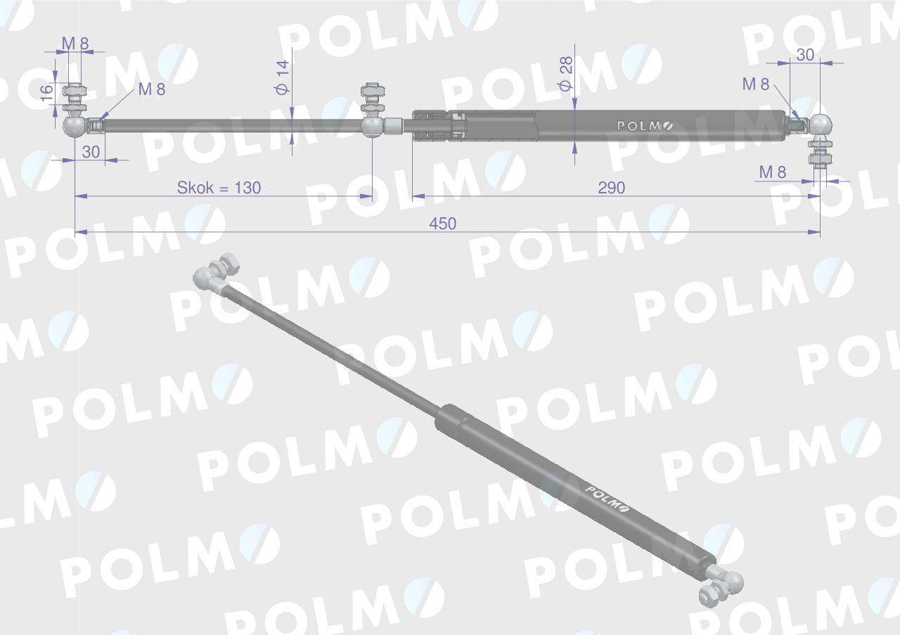 Siłownik maski silnika l max 450mm 87480238p case ih new holland polmo