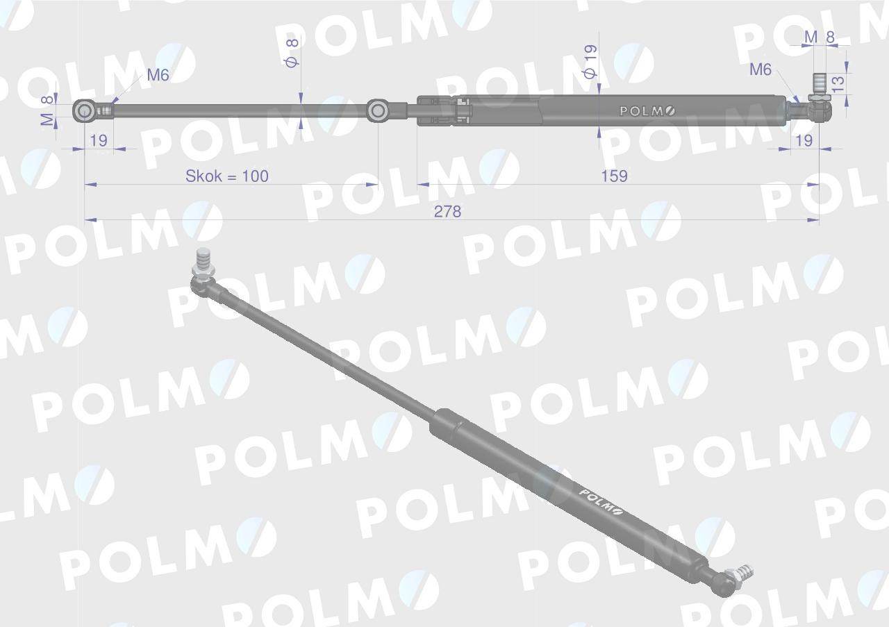 Siłownik szyberdachu l max 278mm 0308250111p mtz polmo