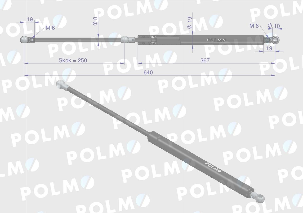 Siłownik szyby przedniej l max 640mm 65417045 fiat polmo
