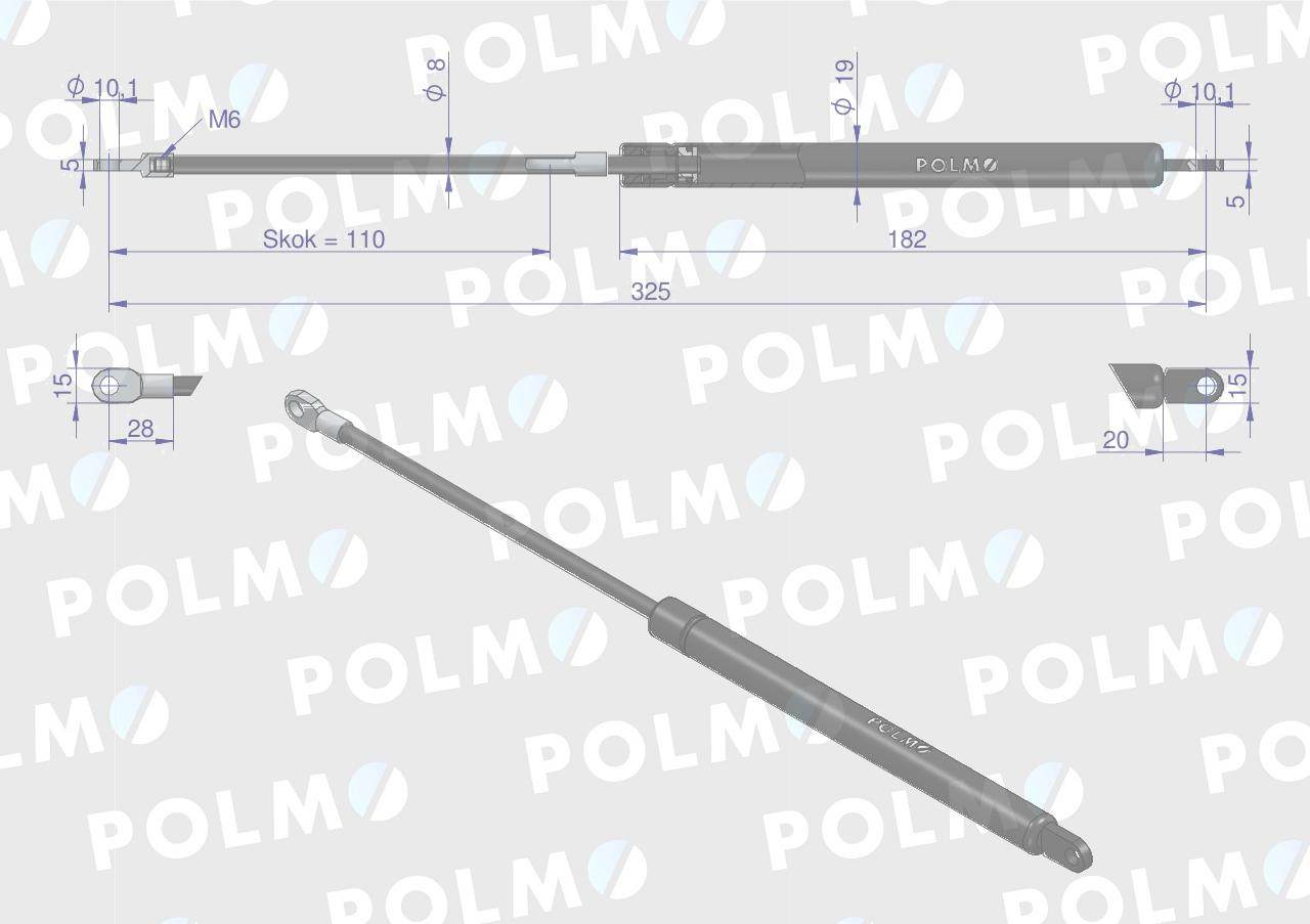 Siłownik szyby tylnej drzwi szyberdachu l max 325mm 6011793200938230 zetor polmo