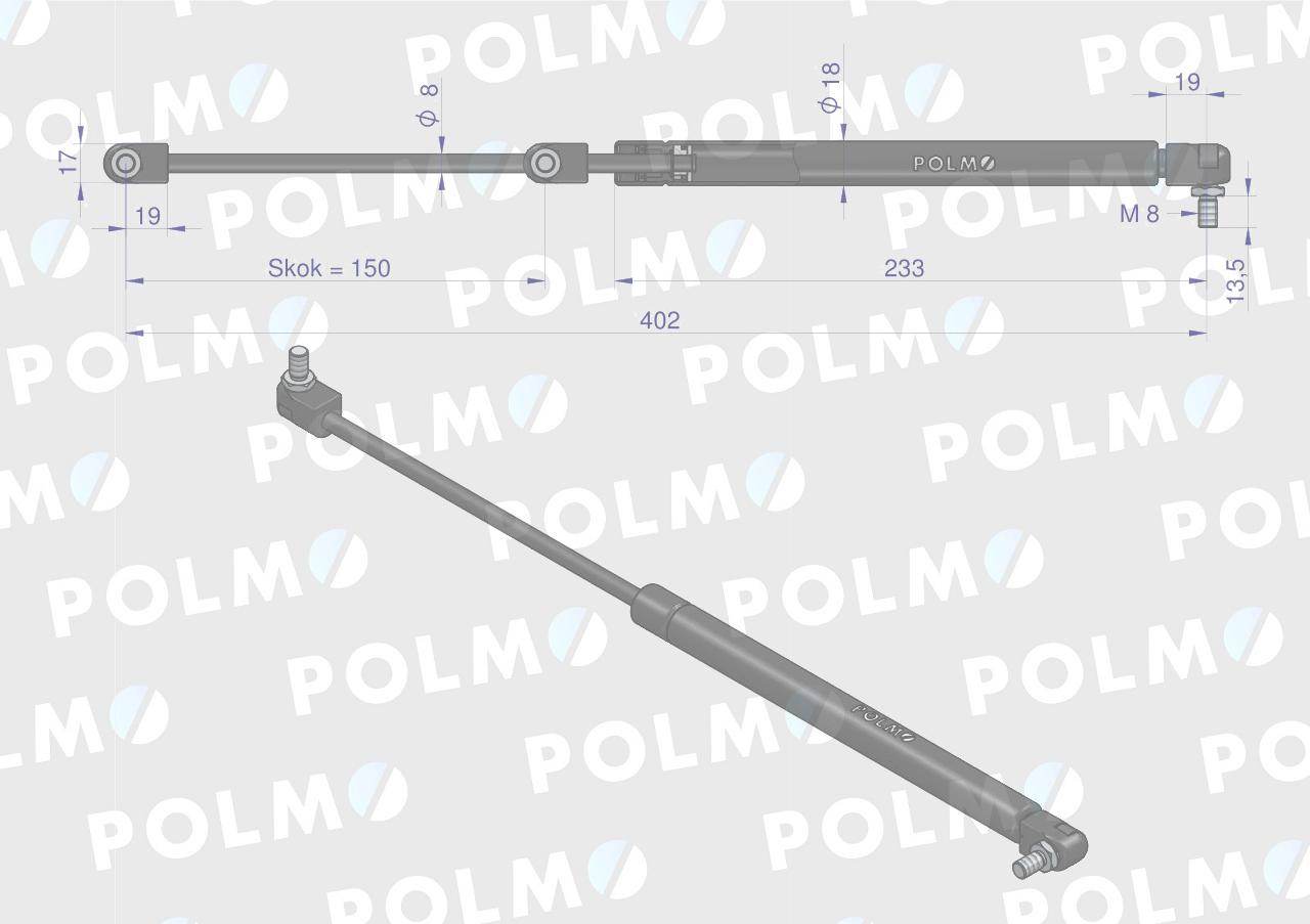 Siłownik szyby tylnej l max 402mm 12190100p zetor polmo