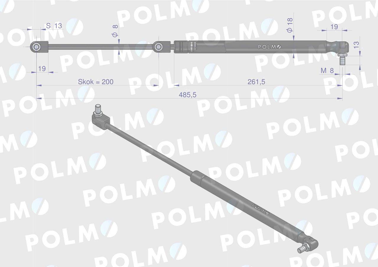 Siłownik szyby tylnej l max 485,5mm 47108190p new holland steyr polmo