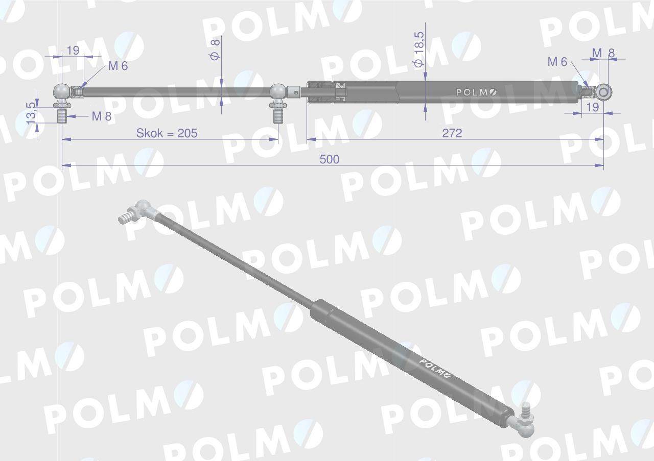 Siłownik szyby tylnej l max 500mm 1332420c1p john deere case ih polmo