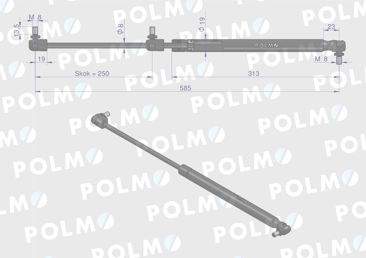 Siłownik szyby tylnej l max 585mm 65417037 massey ferguson polmo