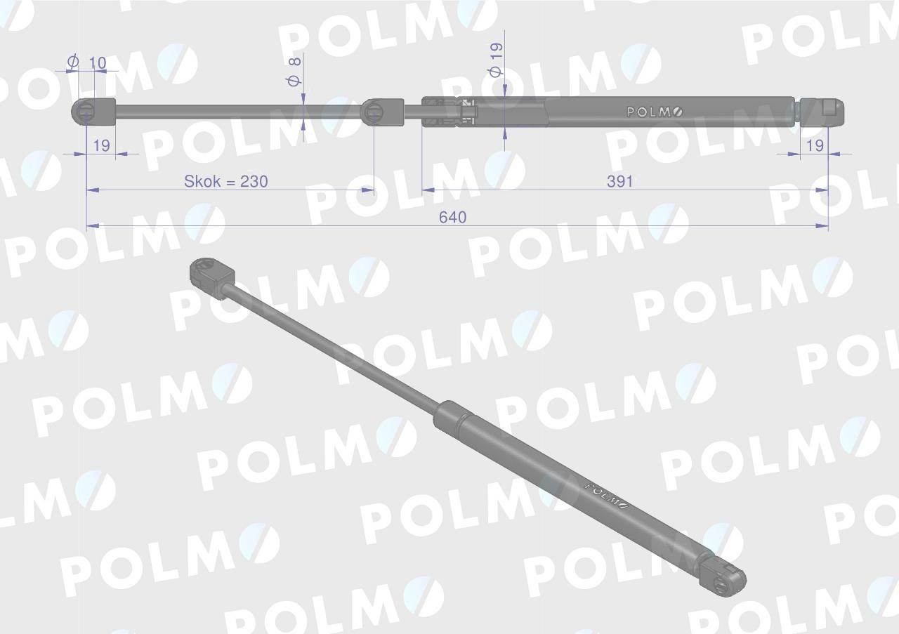 Siłownik szyby tylnej l max 640mm 65417042 fiat polmo