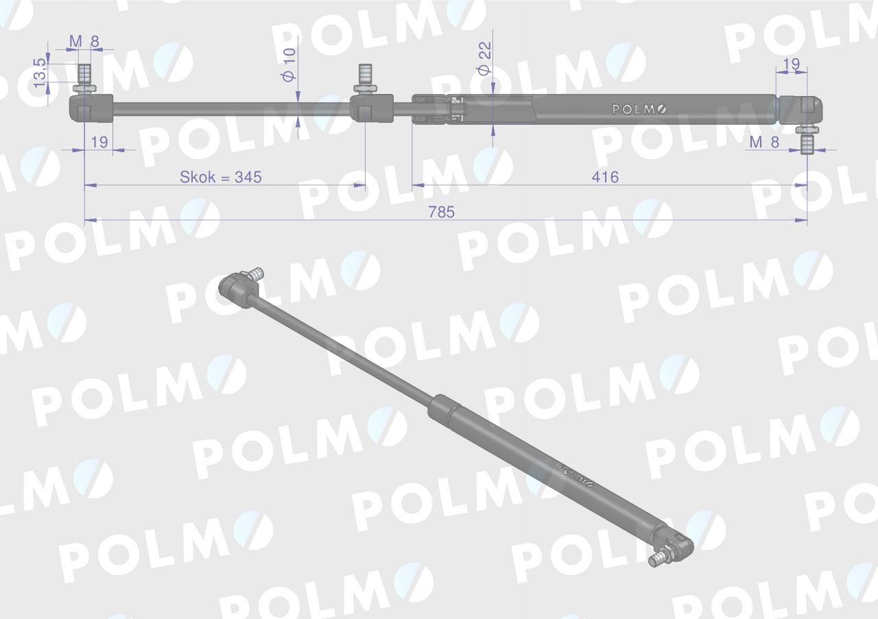 Siłownik szyby tylnej l max 785mm 65415001 massey ferguson polmo