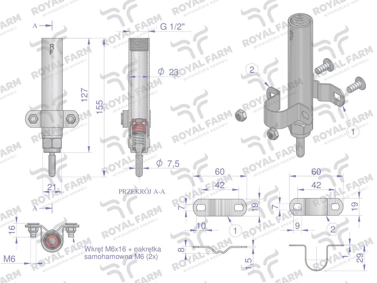 Smoczek do poideł ze stali nierdzewnej l royal farm