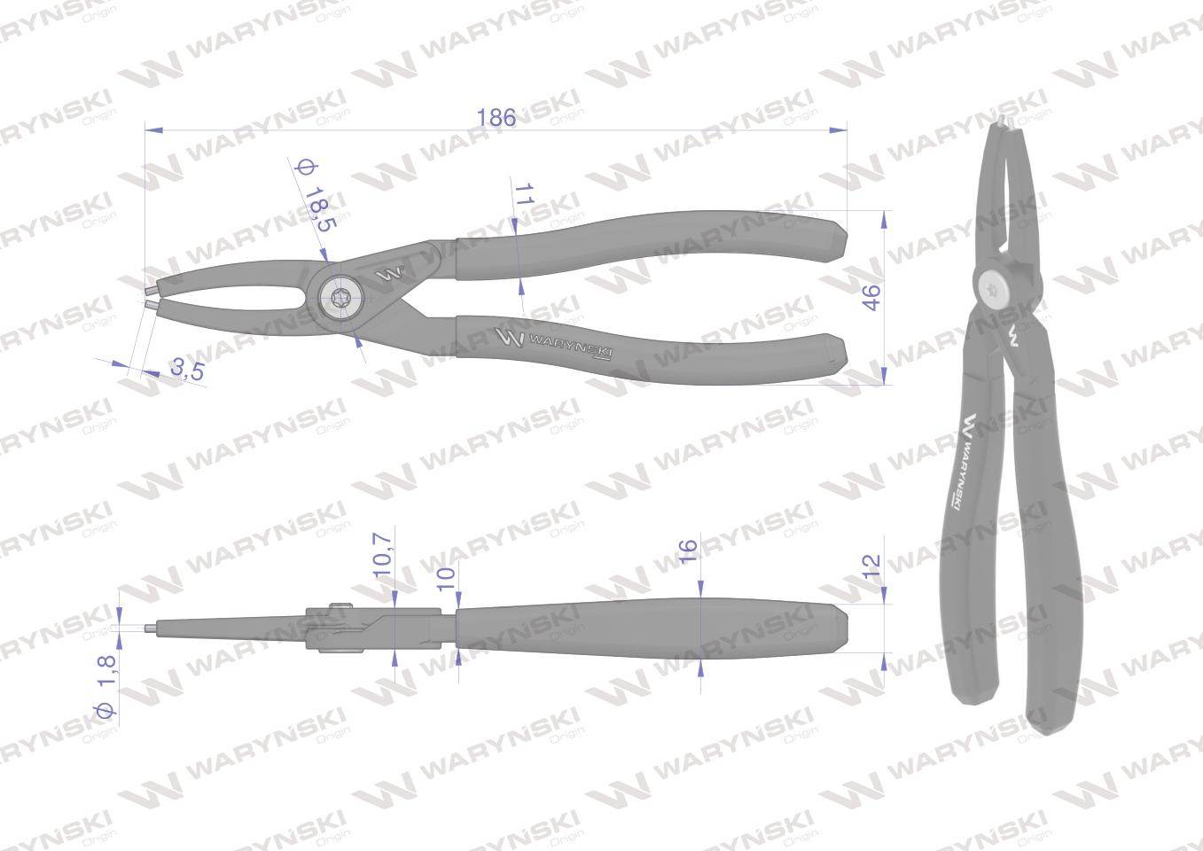 Specjalistyczne szczypce do pierścieni osadczych 178 mm wewnętrzne proste waryński