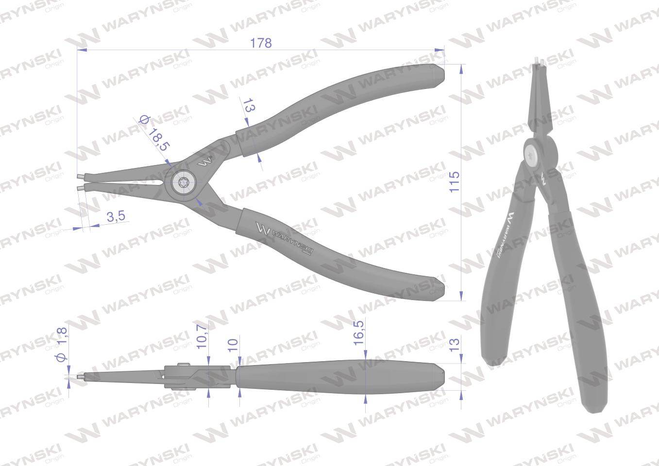 Specjalistyczne szczypce do pierścieni osadczych 178mm zewnętrzne proste waryński