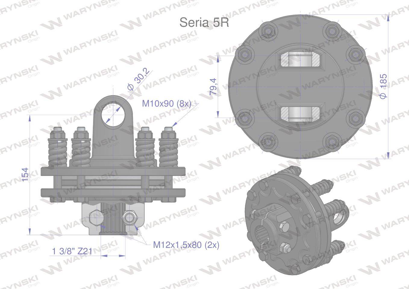 Sprzęgło cierne 2 tarczowe wału seria 5r 1200nm 30x80 1 3/8 z21 waryński
