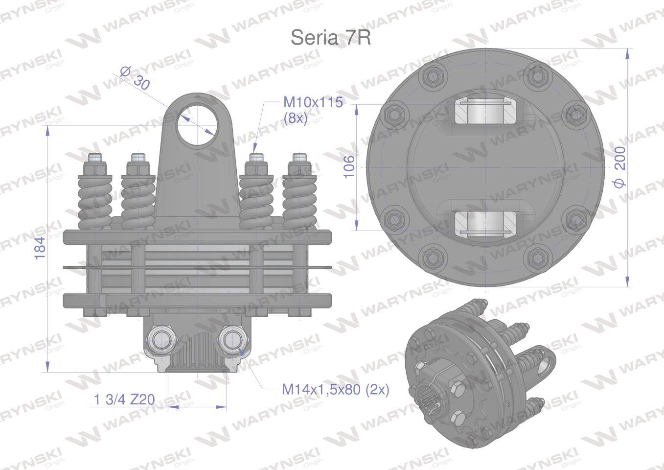 Sprzęgło cierne 4 tarczowe wału seria 7r 1700nm 30×106 1 3/4 z20 waryński