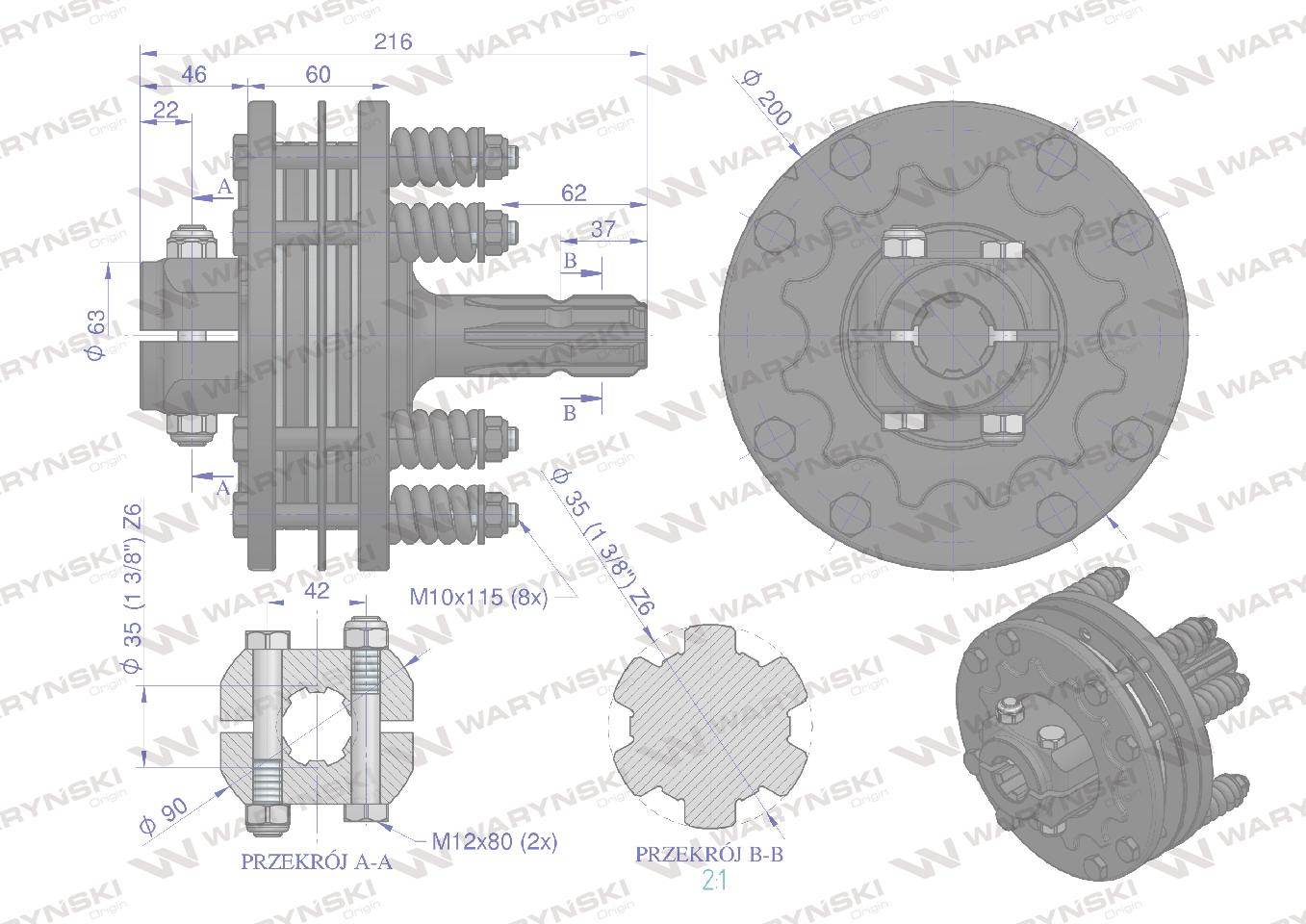 Sprzęgło zewnętrzne cierne wału 1700nm 1 3/8 z6 waryński