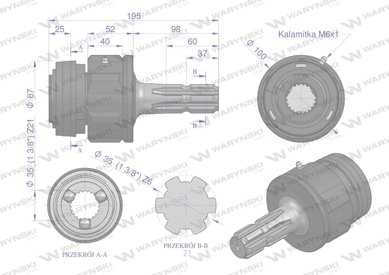 Sprzęgło zewnętrzne jednokierunkowe prawe wału krótkie żeński 1 3/8 z21 męski 1 3/8 z6 waryński