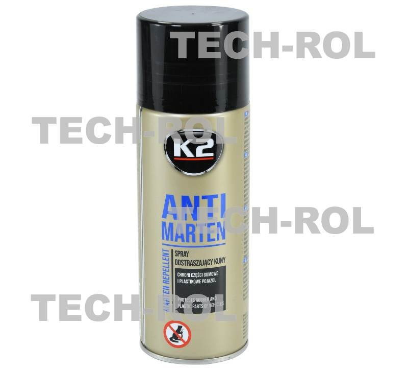 Spray na kuny K2 ANTI MARTEN to wysoce skuteczny środek chroniący elementy ciągnika i samochodu przed uszkodzeniem ze strony kun i gryzoni. Zapobiega przegryzaniu kabli, przewodów czy niszczeniu elementów wygłuszenia, czego efektem mogą być kosztowne awarie pojazdu.