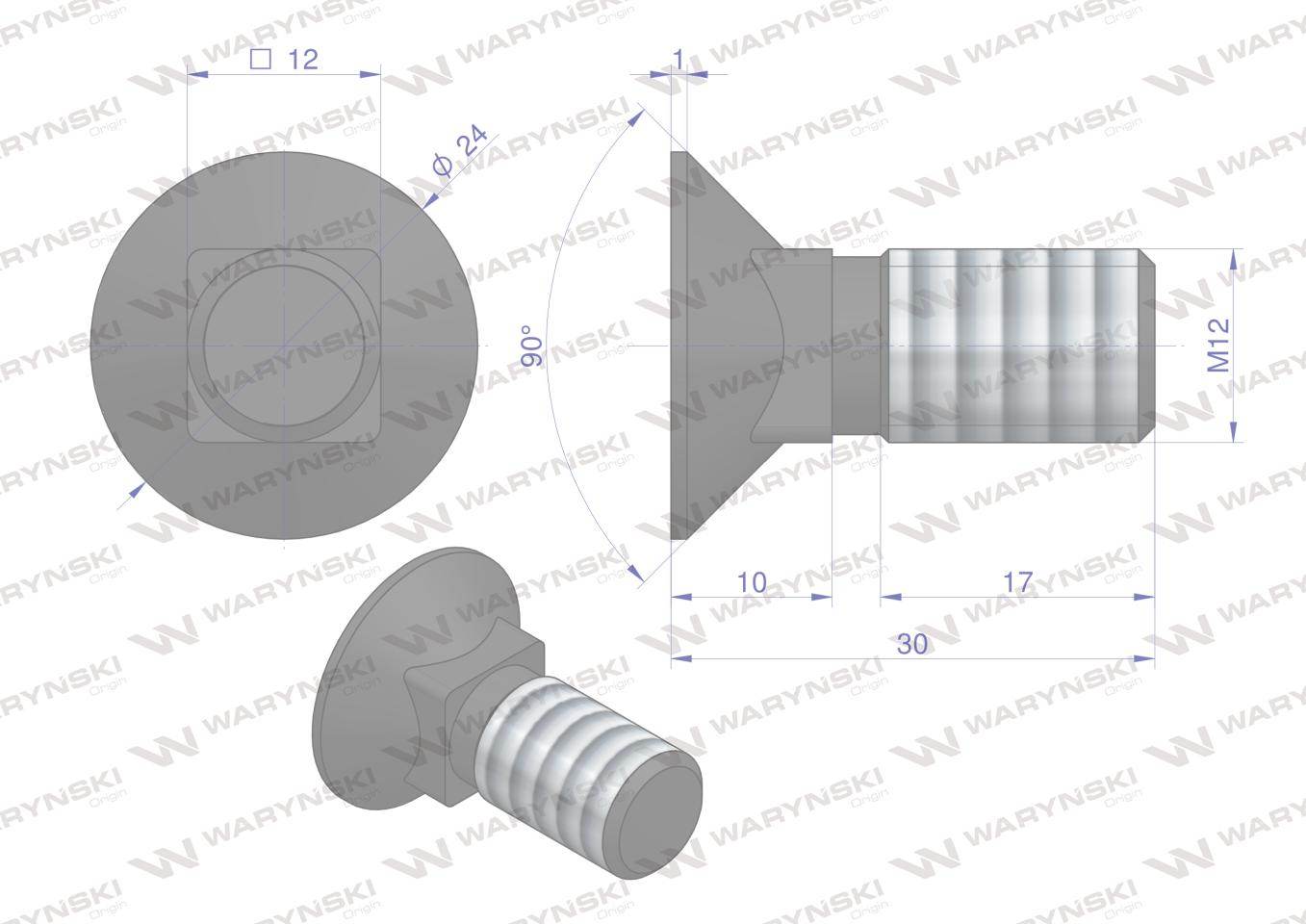 Śruba kpl płużna podsadzana d 608 m12x30mm kl.10.9 waryński 25szt