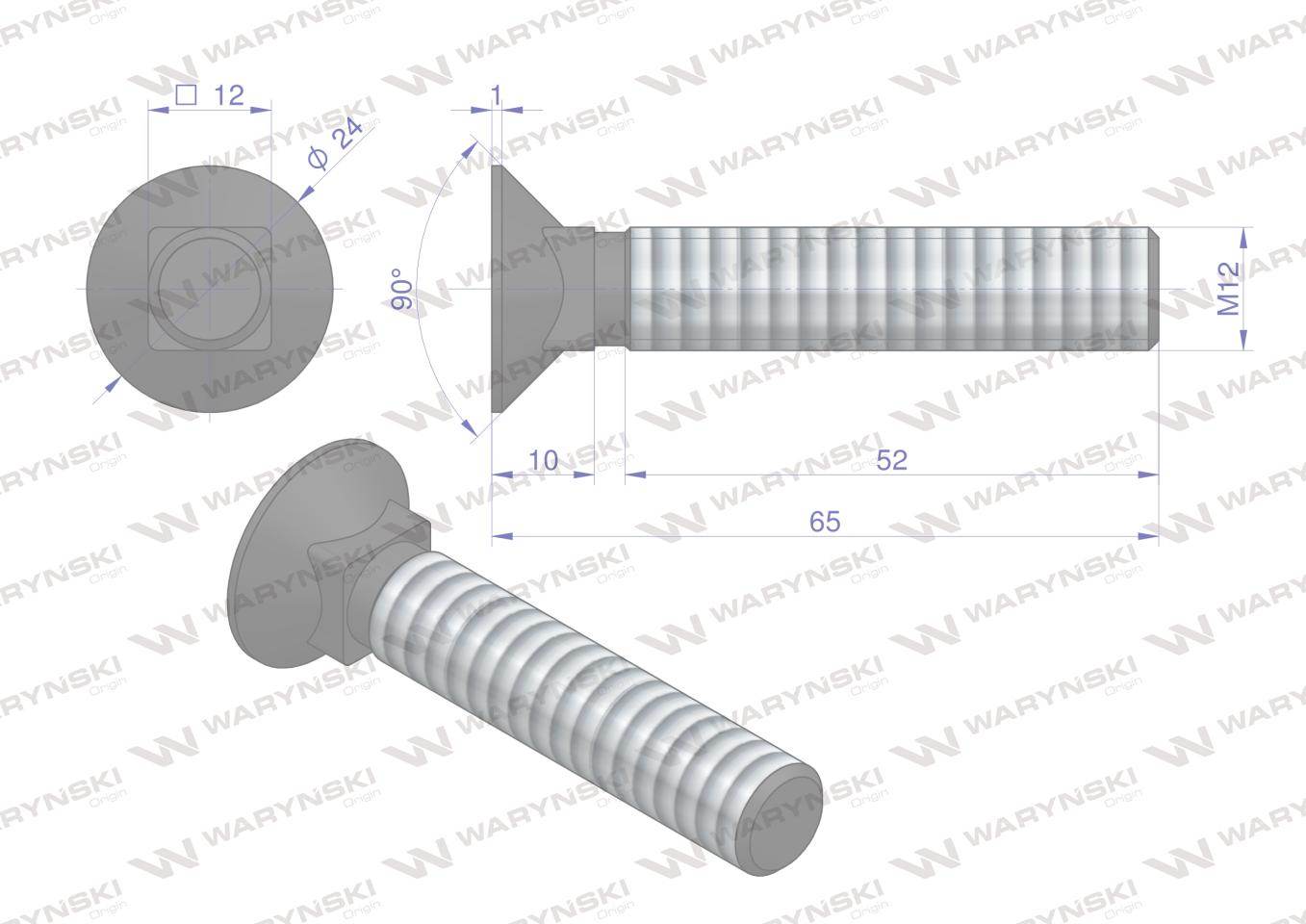 Śruba kpl płużna podsadzana d 608 m12x65mm kl.10.9 waryński 25szt