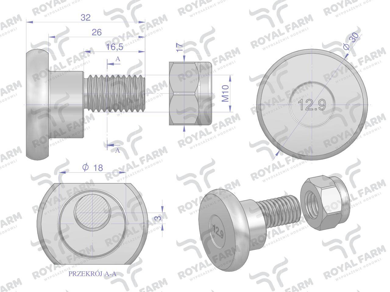 Śruba nożyka kpl m10x32 deutz fahr vicon royal farm 10szt