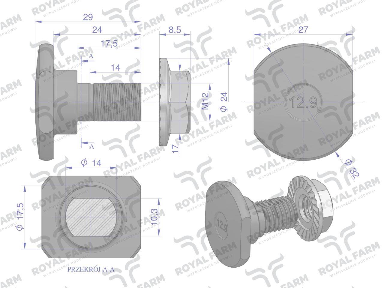 Śruba nożyka kpl m12x29 claas royal farm 1432290 001377266 10szt