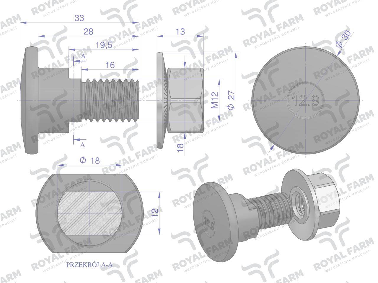Śruba nożyka kpl m12x33 kuhn royal farm 10szt