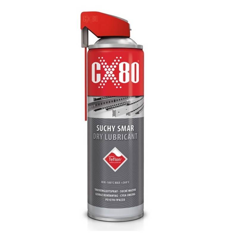 Suchy smar teflonowy przezroczysty odporny na zanieczyszczenia, przeznaczony do suchego smarowania punktów tarcia 500ml z aplikatorem Duo-Spray CX-80