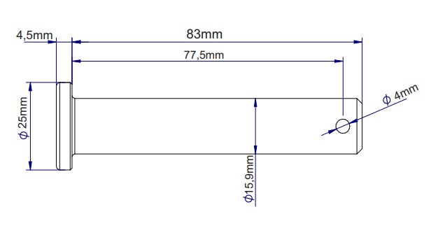 Długość robocza sworznia (do osi otworu) – 77,5 mm