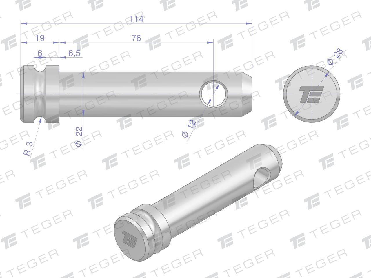 Sworzeń łącznika górnego 22x76x114 teger sworznie w marce teger posiadają trwałe oznakowanie są utwardzane cieplnie. Wykazują wyższą twardość i powtarzalność . Produkty marki teger znajdują zastosowanie w przemyśle, rolnictwie, ogrodnictwie, budownictwie i motoryzacji