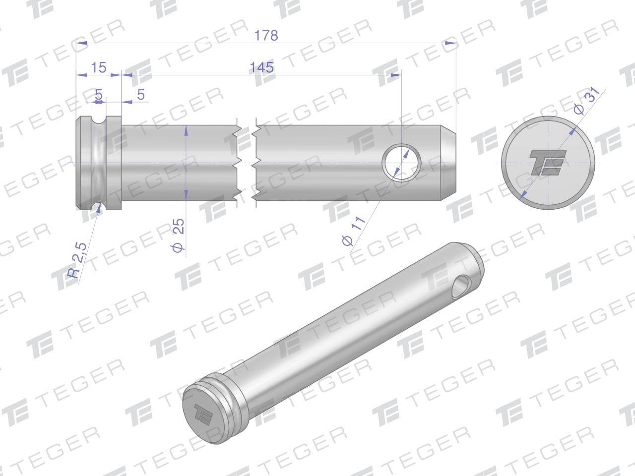 Sworzeń łącznika górnego 25x145x178 teger sworznie w marce teger posiadają trwałe oznakowanie są utwardzane cieplnie. Wykazują wyższą twardość i powtarzalność . Produkty marki teger znajdują zastosowanie w przemyśle, rolnictwie, ogrodnictwie, budownictwie i motoryzacji