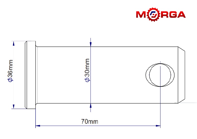 Długość robocza sworznia (do osi otworu) – 70 mm