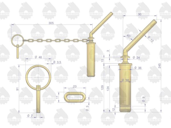 Sworzeń zaczepu górnego c-330 oryginał ursus
