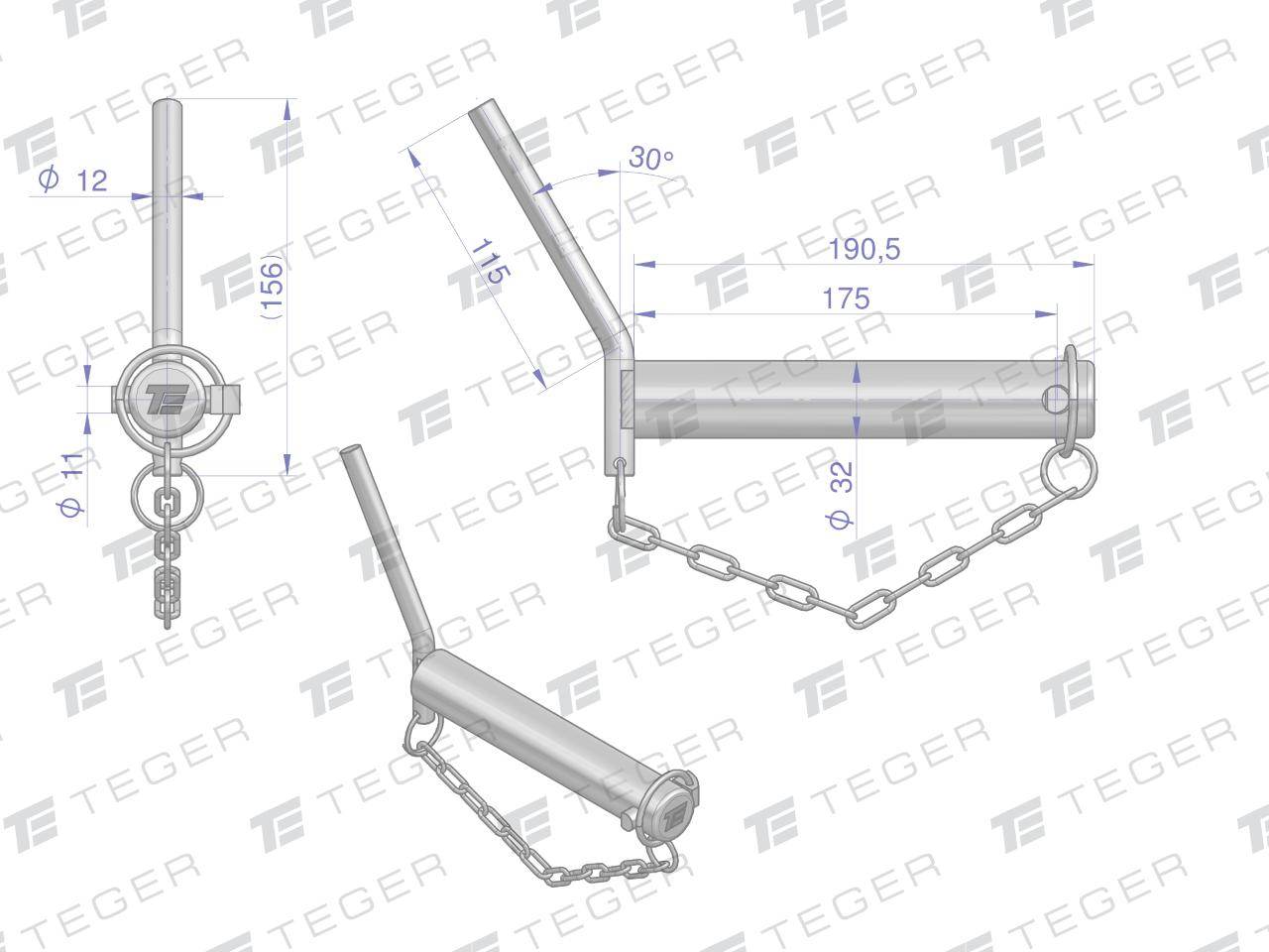 Sworzeń zaczepu z wygiętym uchwytem 32×175 teger