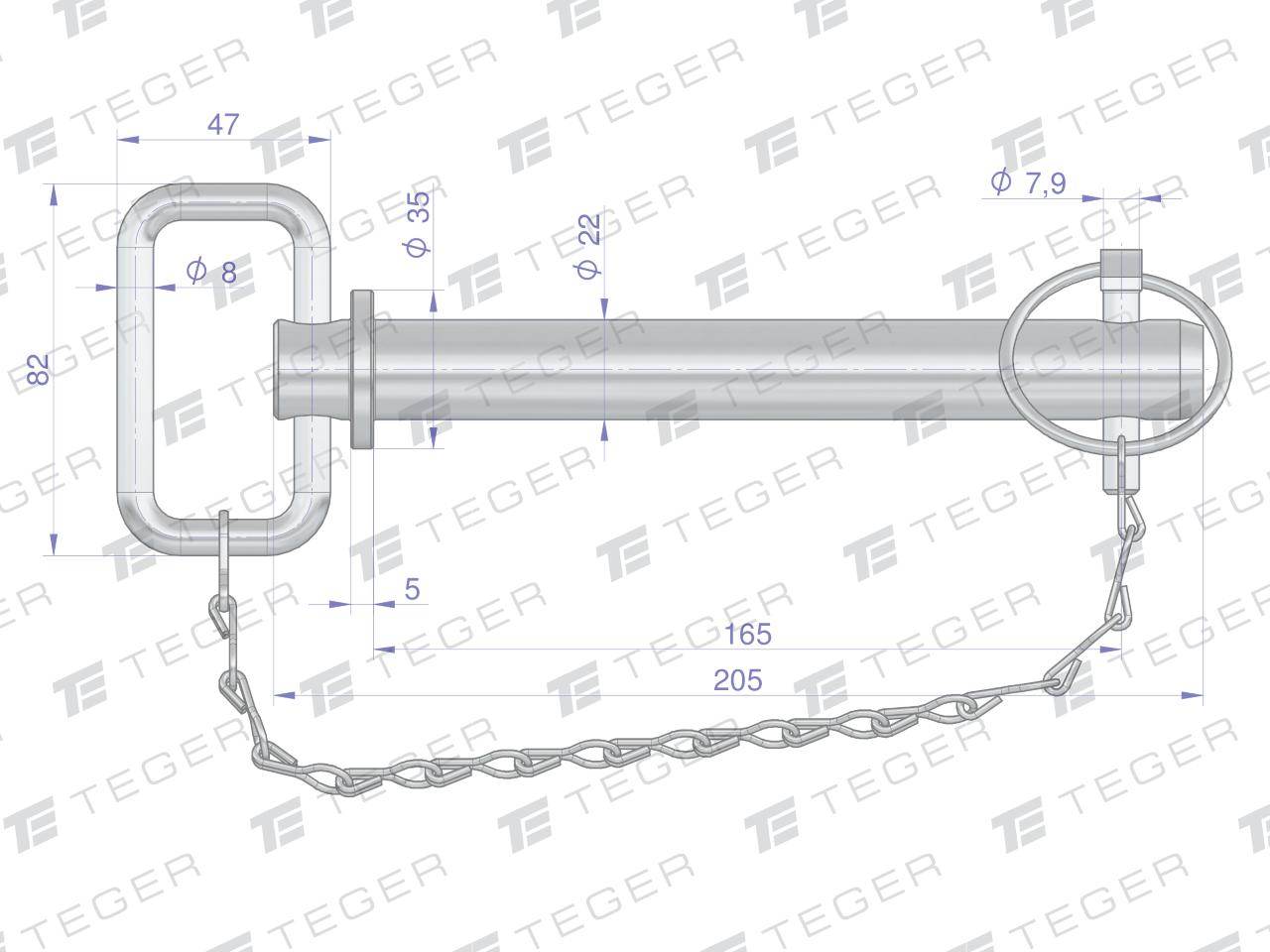 Sworzeń zaczepu z zawleczką i łańcuchem 22x165x205 teger