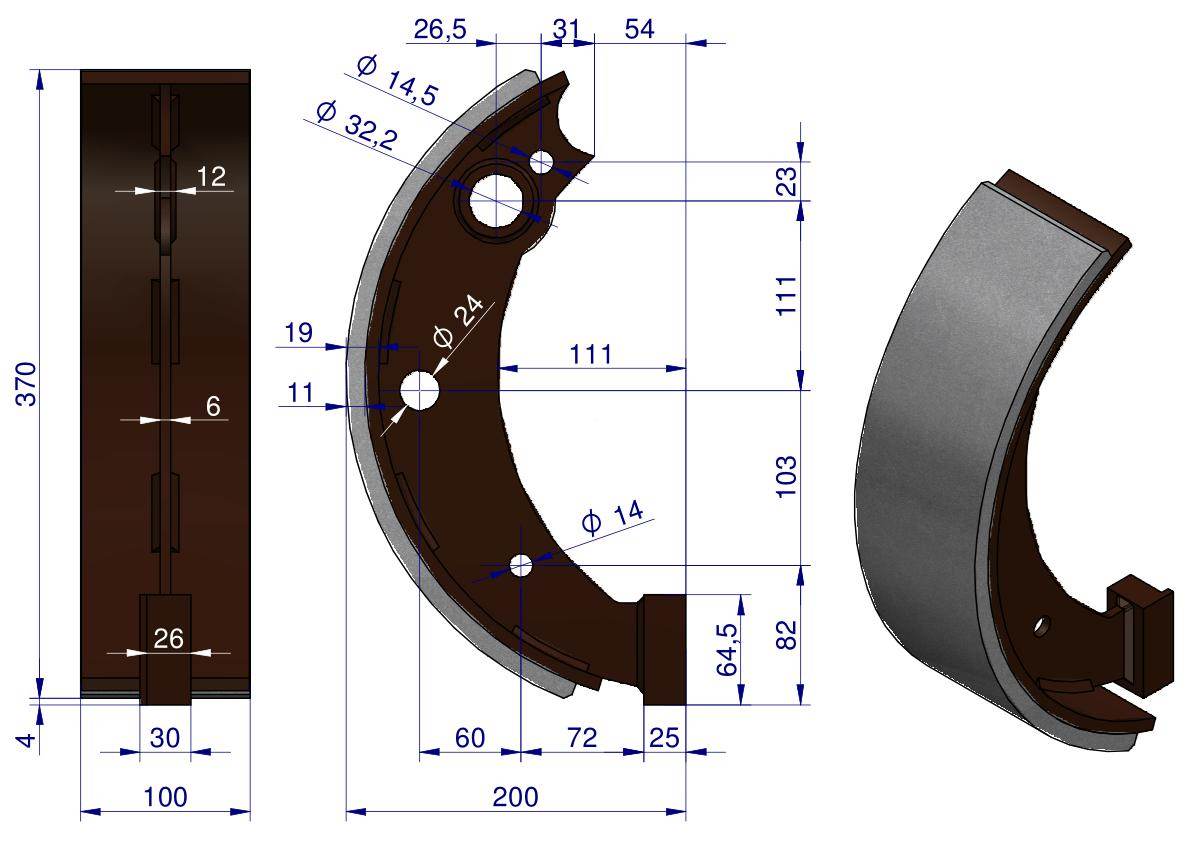 Szczęka hamulcowa kpl 1-prawa 1-lewa przyczepa d-50 6010027000/6010027200 polmo