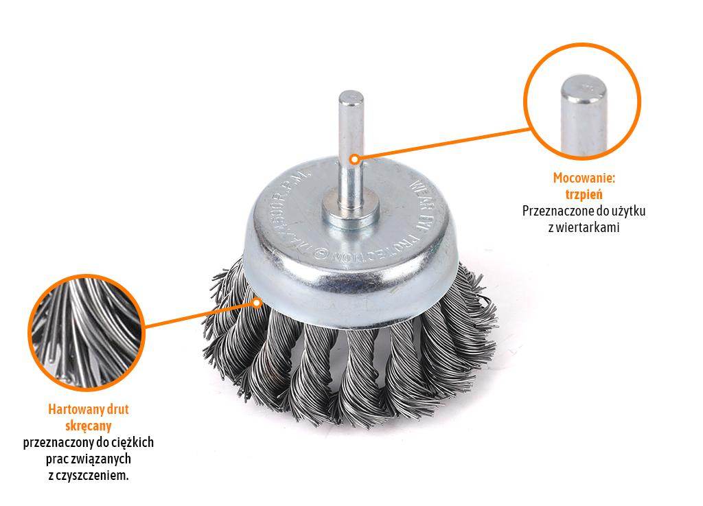 Szczotka doczołowa z trzpieniem drut skręcany fi 6/80mm teger