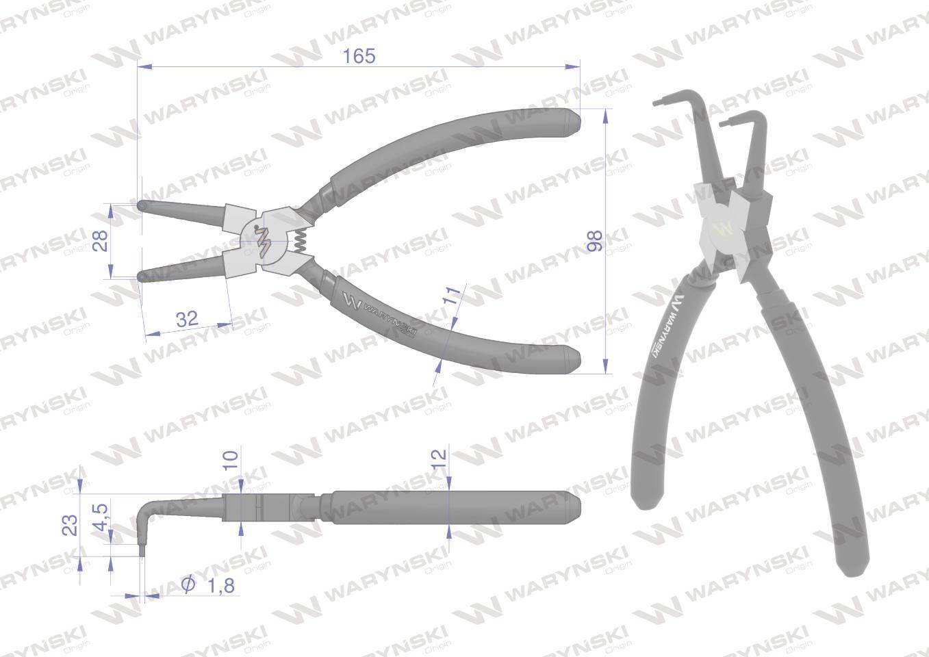 Szczypce do pierścieni osadczych 180mm wewnętrzne wygięte waryński