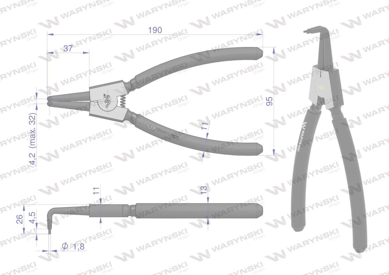 Szczypce do pierścieni osadczych 200mm zewnętrzne wygięte waryński