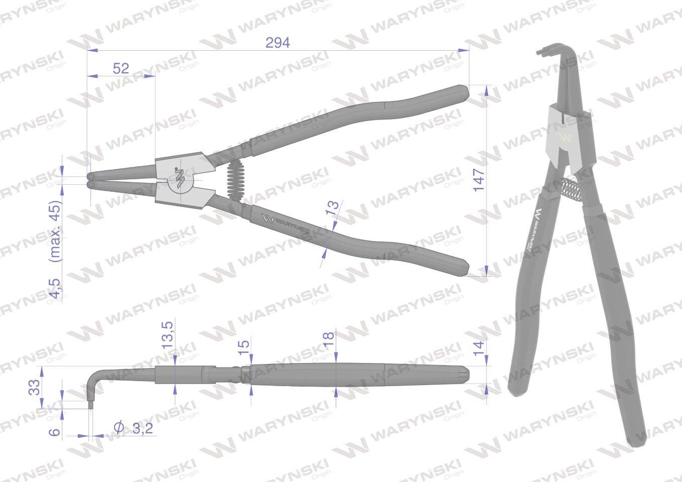 Szczypce do pierścieni osadczych 300mm zewnętrzne wygięte waryński