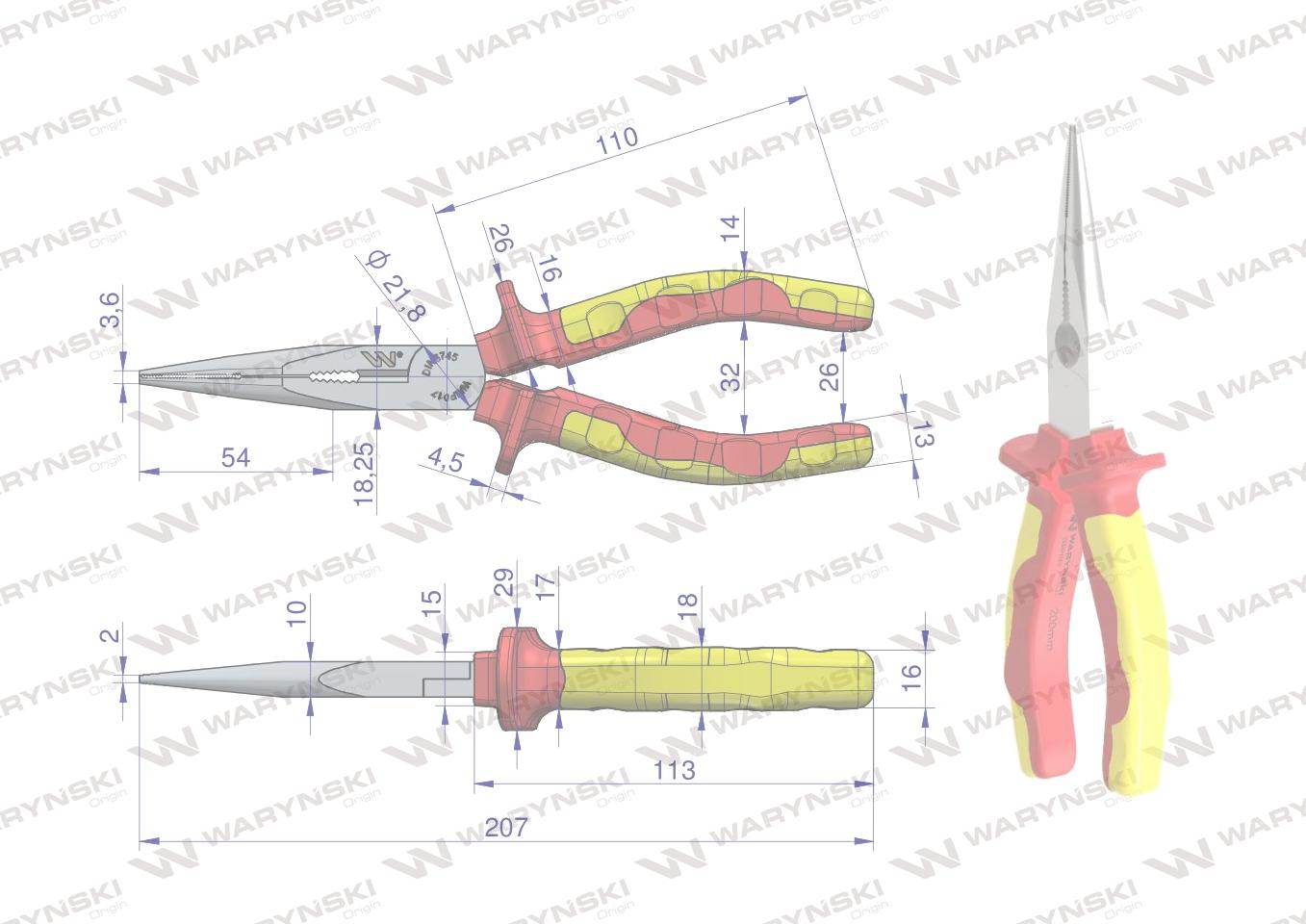 Szczypce wydłużone proste 200 mm. Vde. Waryński